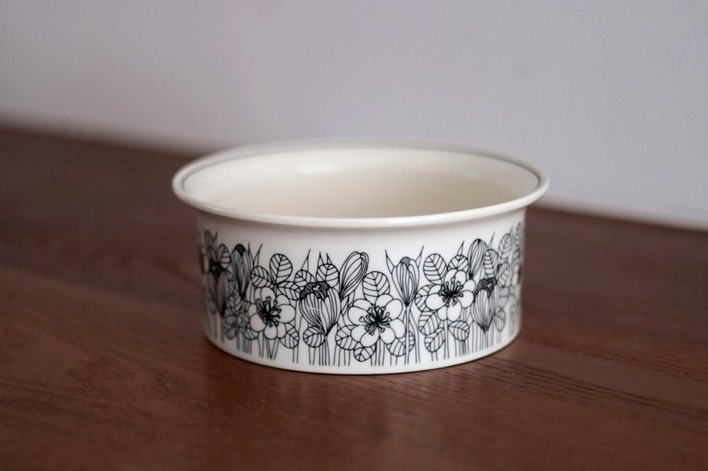 クロッカスシリーズの15cmボウルです。ブラックの単線で草花が描かれており、シンプルな美しさがとても良いですね。