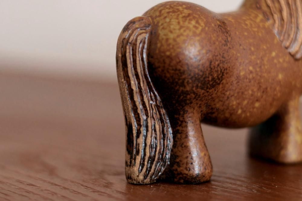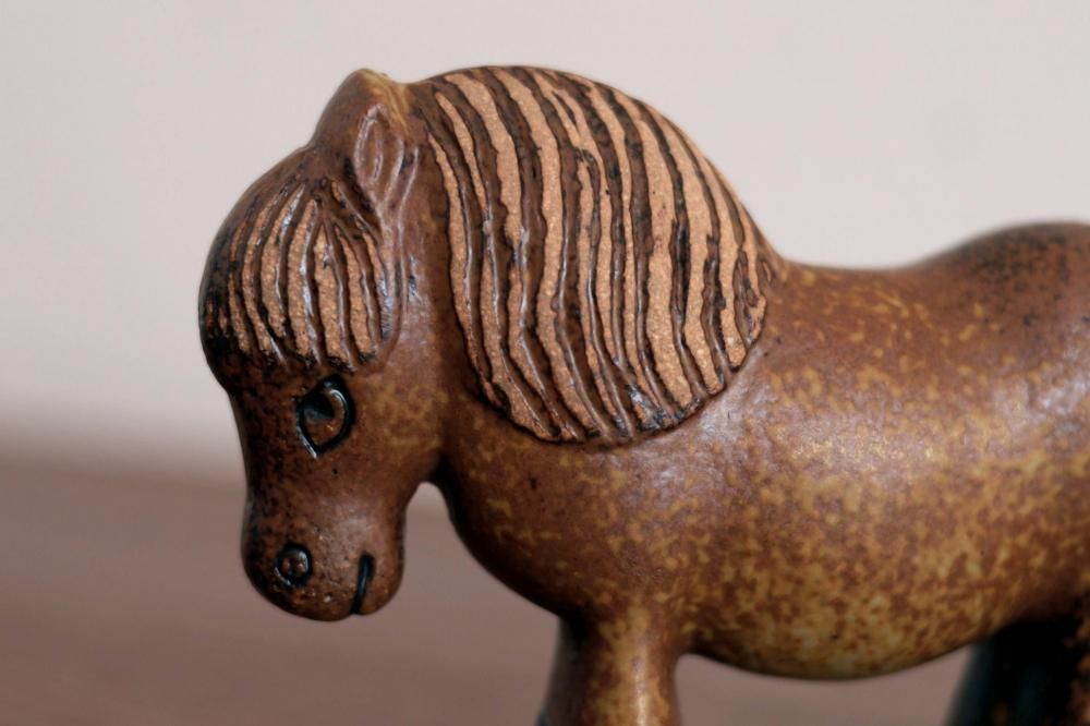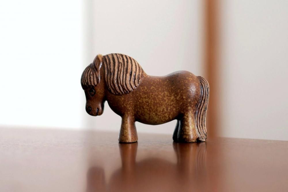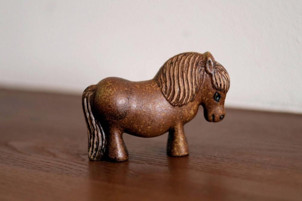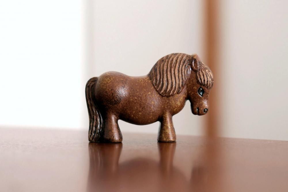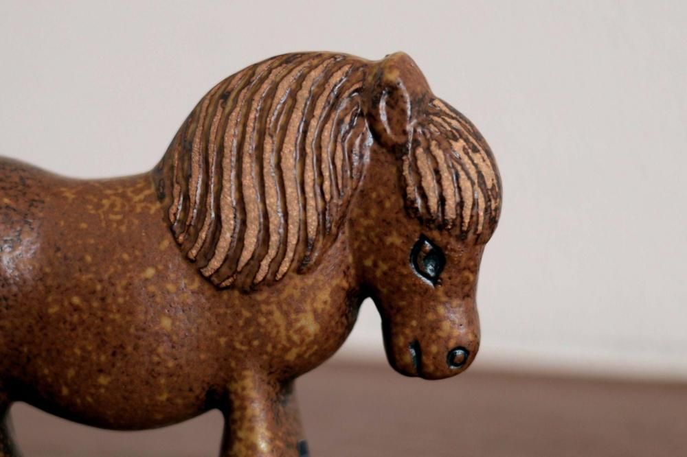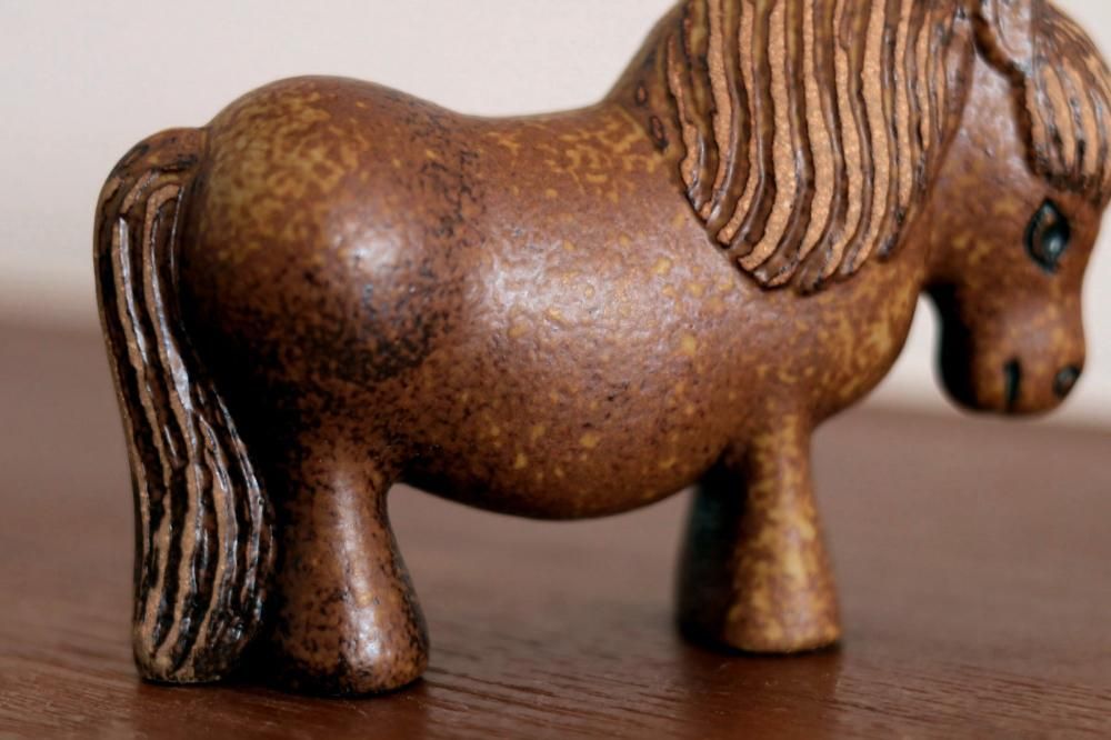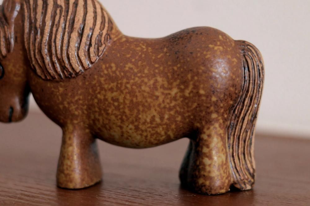 Lill Skansen(小さなスカンセン)シリーズのポニーです。釉薬で見えにくいですが足の裏に"LISA L"と"SWEDEN"の刻印が入っていると思います(画像11,12)。側面にGustavsbergのステッカーが貼られたままの状態です(画像9)。*ステッカーは配送中に剥がれてしまう場合もありますので予めご了承頂きますようお願い致します。