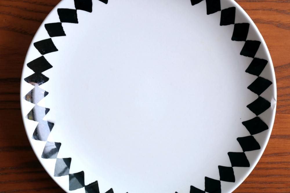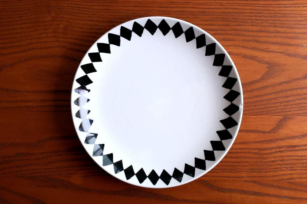 黒のダイヤが印象的なSvart Ruterシリーズのランチプレート。洗練されたデザインながら、手描きされたペイントに温かみを感じます。