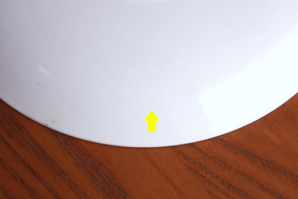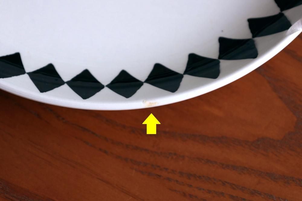 コンディション:表側は、擦れがやや目立ちます。縁に1か所カケがあります(画像5)。裏側は、擦れがやや目立ちます。縁や裏側には焼成時の釉薬のかかっていない部分が数か所あり、多少変色が見られます(画像6,7)。