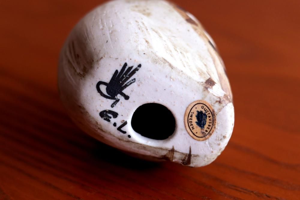 Edvard Lindahlデザインのフクロウです。通常より薄目の色合いで良いですね。底部にE.LのサインとGustavsbergのマークが入っています。また、Gustavsbergのステッカーが貼られたままの状態です。*ステッカーは配送中に剥がれてしまう場合もありますので予めご了承頂きますようお願い致します。