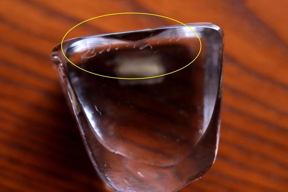 顔が象られたガラスオブジェです。底部にカットサインが入っています(画像5)。また、BODA社のステッカーが貼られたままの状態です(画像6)。*ステッカーは配送中に剥がれてしまう場合もありますので予めご了承頂きますようお願い致します。