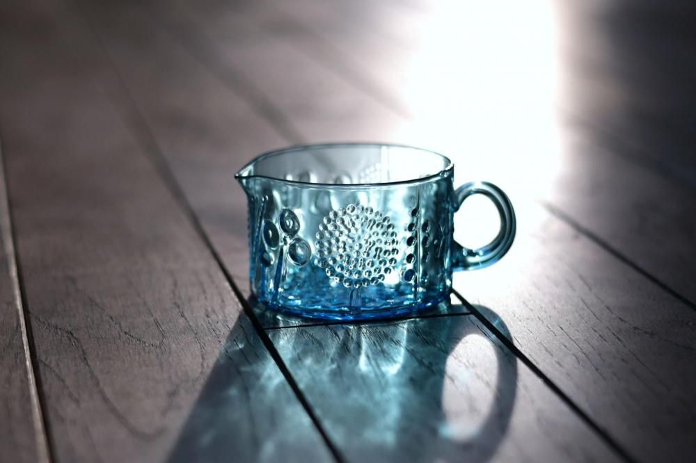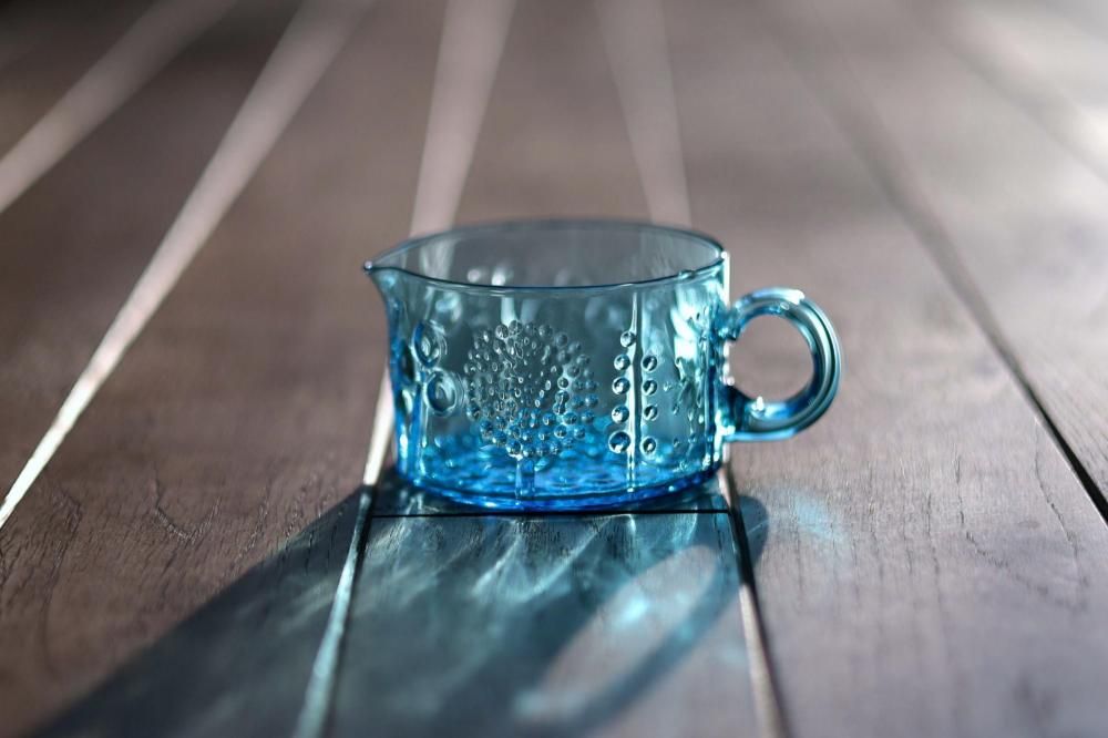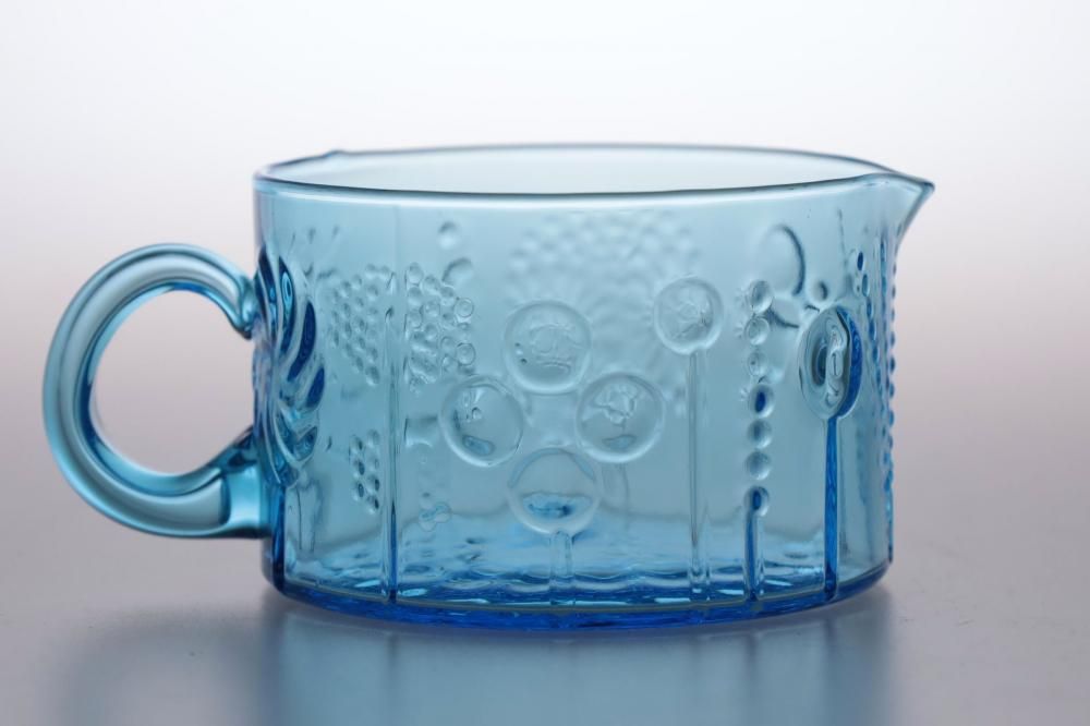 Floraシリーズのガラスクリーマー。木や植物が側面にデザインされてとても可愛らしいですね。