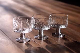 Gunnel Nymanデザインのシュガーボウル。整然と配置された小さな気泡がクリアガラスの美しさをより一層引き立てています。